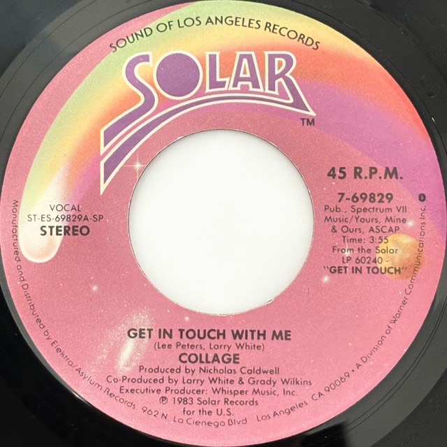 LA出身のファンク/ディスコグループCollageの83年作「Get in Touch」からのカットシングル。